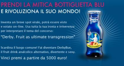 La famosissima bottiglietta blu di DerbyBlue si presenta come l’alternativa analcolica, il divertimento spontaneo, il fruit drink scherzoso. Il tema del concorso offre dunque l’opportunità ai ragazzi di lavorare sul concetto di DerbyBlue come alternativa trendy, divertente e sexy per sedurre in modo ironico, inaspettato e intrigante, senza presentarsi in maniera estremamente peccaminosa o trasgressiva.