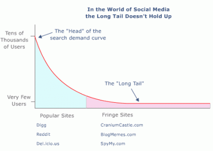 Il mondo dei social media, mondo in cui ognuno può entrare e contribuire, ha portato rendite nulle o scarse alla maggior parte dei partecipanti. Ad esempio, ci sono milioni di bloggers e solo pochi di essi possono effettivamente vantare rendite cospicue: soltanto una parte ancora più piccola ha costruito dei veri e propri imperi mediatici. Lasciando per un attimo da parte gli utilizzatori stessi, molte aziende si concentrano sulla generazione di hits, visite, o numero dei registrati, preoccupandosi poi di trovare il modo migliore di monetizzare questi numeri. Date uno sguardo ai Social Networks, alcuni sono stati valutati cifre da capogiro, e ciò nonostante non abbiamo ancora sentito storie in cui siano stati fatti soldi a palate. I profitti sono rari e la maggior parte dei creators (coloro che creano attivamente contributi) non genererà alcun profitto.