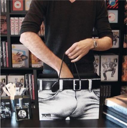 Una shopping bag particolarmente esplicita, creata con i disegni di Tom of Finland ,noto per le sue rappresentazioni omoerotiche.
