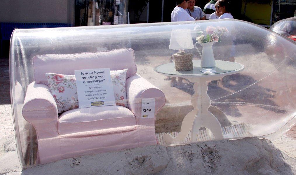 Ikea ha realizzato un nuovo Ambient: bottiglie giganti sulla spiaggia di Tampa Bay (Florida), contenenti mobili ad altezza naturale con le richieste di soccorso delle nostre case: “Is your home sending you a message?“.
