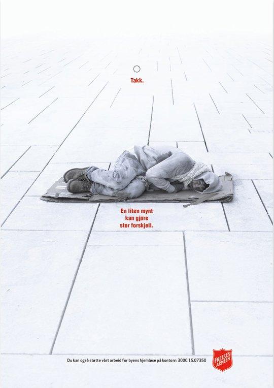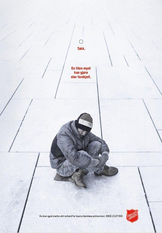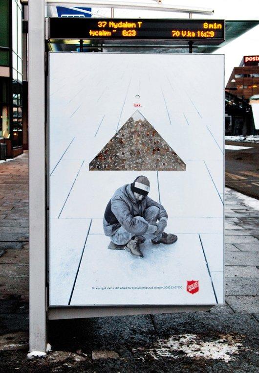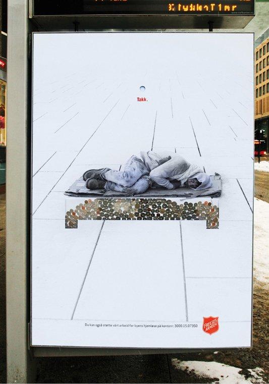 In Norvegia ibillboard alle fermate dei bus raccolgono monetine che, infilate nella fessura, vanno a comporre simbolicamente tetti e letti per i bisognosi.