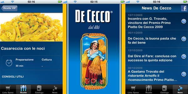 De Cecco ha sviluppato una app con un raccoglitore per la lista della spesa con audio e video ricette, un catalogo dei prodotti e le news dell’azienda.