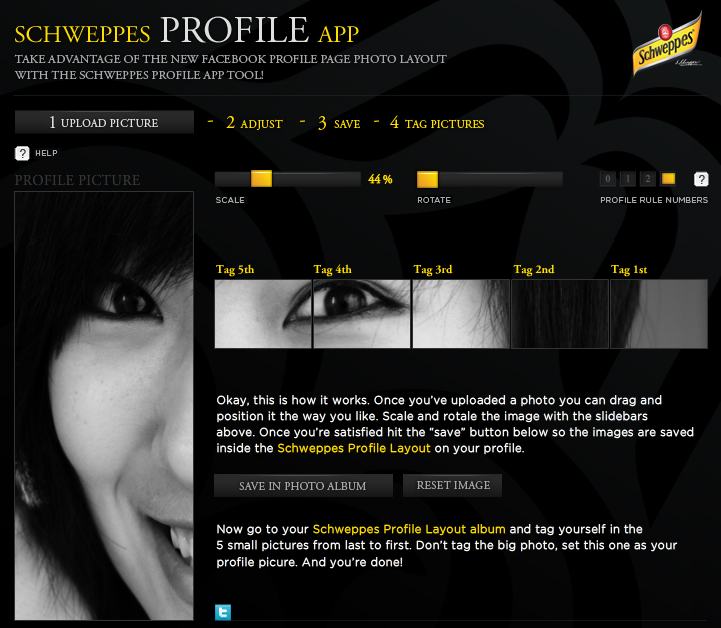 Allora sarà la Schweppes Facebook Profile App, creata dall'agenzia Super Social, a fare al vostro caso. Per provarla, potete cliccare qui. Per capire come funziona, guardate il seguente video: