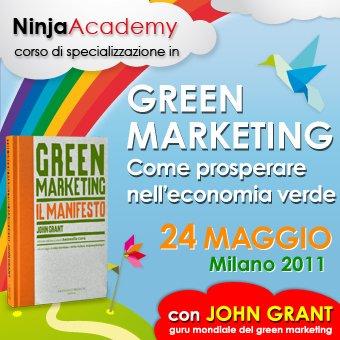 John Grant, grazie al suo prezioso intervento, ci insegnerà che il Green, se pensato e implementato correttamente, può diventare un'opportunità, un generatore di nuove idee, innovazioni e nuovi segmenti di mercato. Ci renderemo conto che chi non vivrà il Green in modo proattivo non solo non riuscirà a trarre beneficio dai cambiamenti attuali, ma addirittura metterà a rischio la sopravvivenza aziendale. Grant ci insegnerà, inoltre, come l'utilizzo dei social media possa relazionarsi con le tematiche Green creando delle vere e proprie community attorno ad iniziative di stampo ecosostenibile.