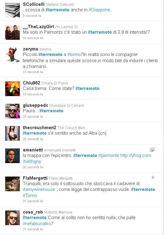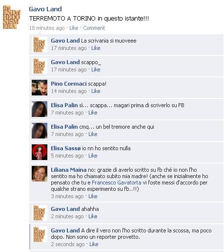 La terra a Torino per ora non trema più, ma c'è da scommettersi che per un po' su Twitter e su Facebook non si parlerà d'altro!