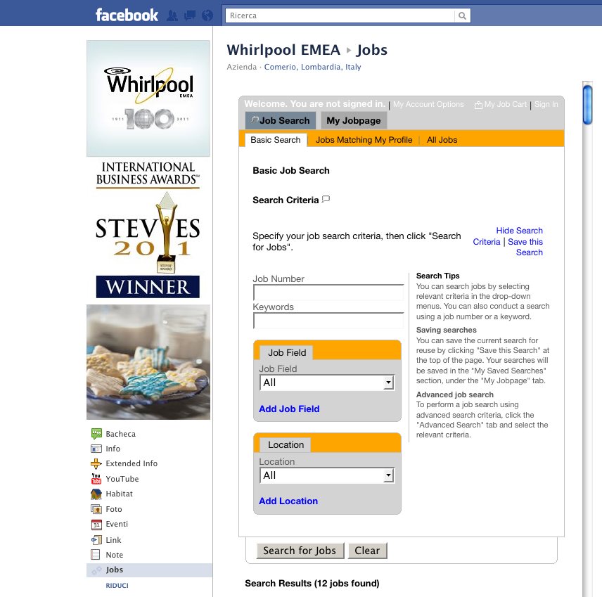 L’azienda di elettrodomestici con la sua nuova pagina Facebook "Whirlpool EMEA" (Europa, Medio Oriente e Africa) sfrutta appieno quelle che sono le potenzialità dei social network, inserendo tra le altre una tab “job”. I fan possono quindi cercare le posizioni aperte, suddivise per tipologia e aree geografiche, e candidarsi.