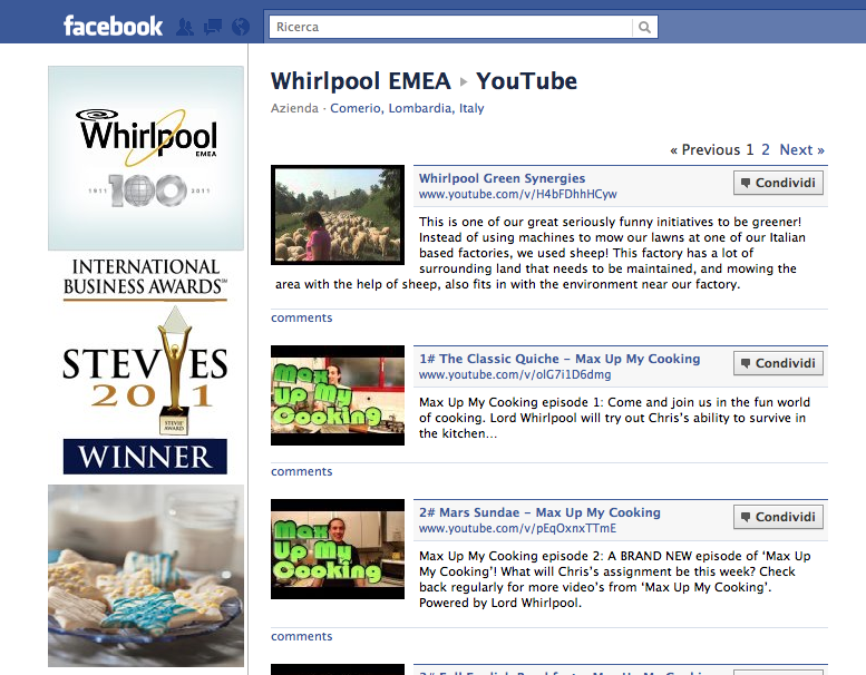 Un’ottima iniziativa per coinvolgere i fan e offrire loro un contatto diretto con l’azienda. L’idea fa parte di un progetto più ampio nato con il nome di “I love whirlpool” volto a svecchiare l’immagine dell’azienda e renderla più cool e attraente per i giovani neolaureati in cerca di un’azienda dove poter esprimere le proprie capacità.