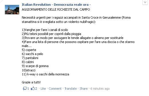 ma anche appelli e richieste d'aiuto, come quelle arrivate dagli "indignados" che stanno occupando per protesta una piazza di Roma: