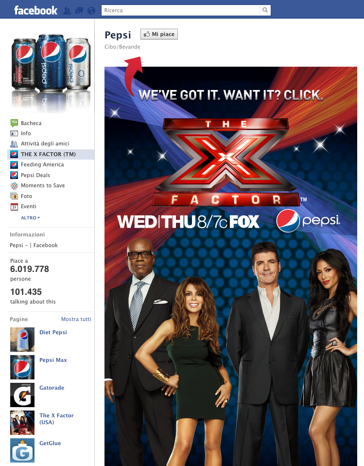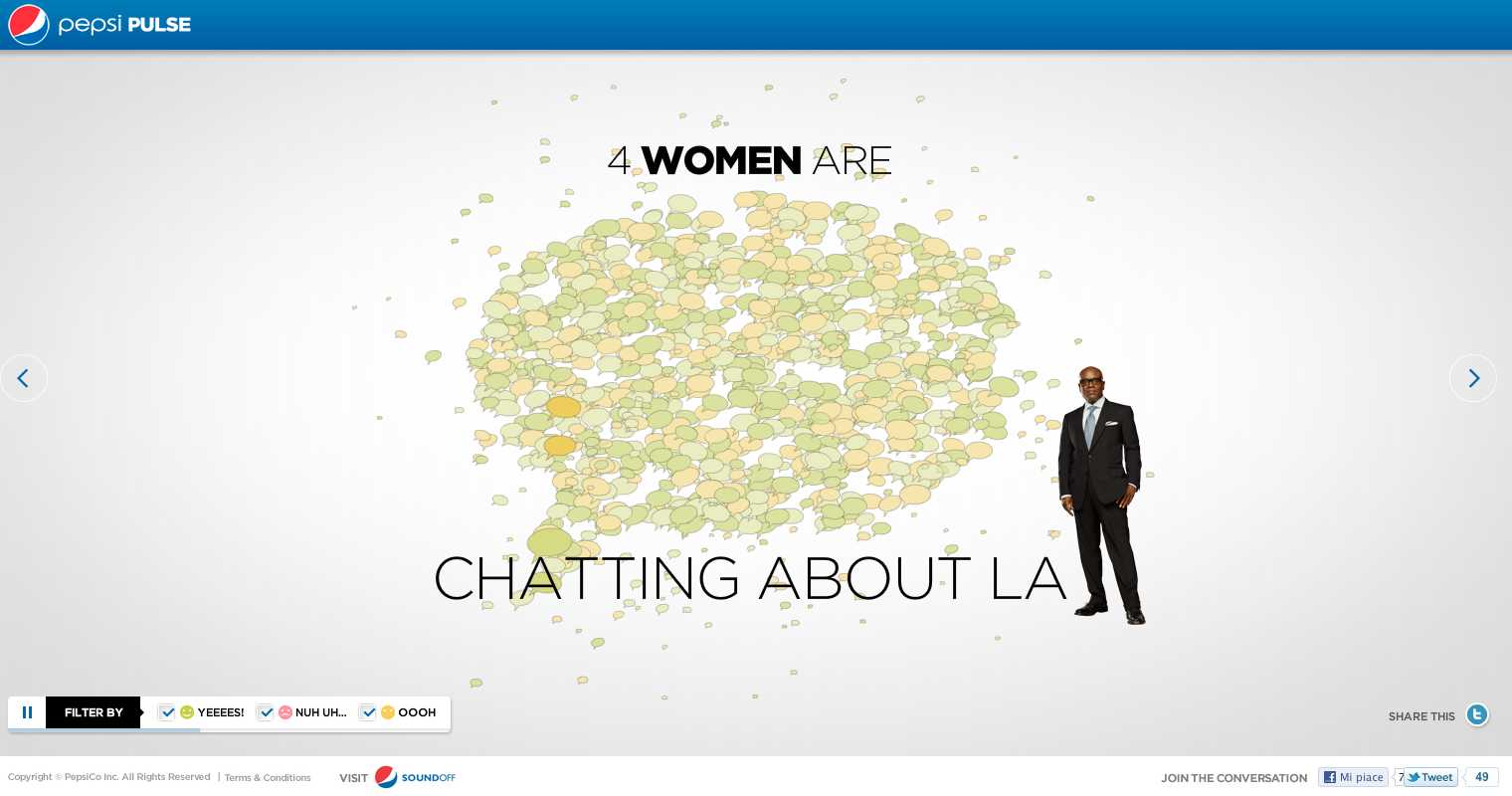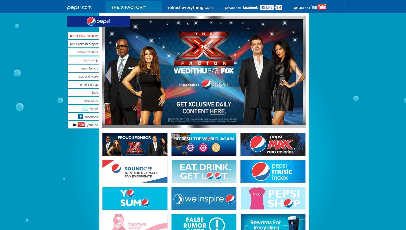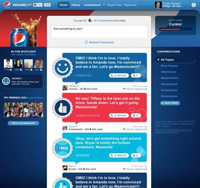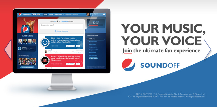 Pepsi.com, partner ufficiale della trasmissione televisiva X-Factor (Fox), ha pensato ad una strategia di comunicazione in chiave social per incentivare i commenti sul programma, e per farlo, ha pensato a due iniziative: Pepsi Pulse e Pepsi Sound Off.