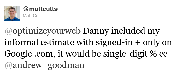 Attualmente su un’analisi a campione su alcuni siti web si è constatato come la percentuale dei risultati “marchiati” Not provided si aggirino tra il 2% e il 4%. Percentuale coerente con quello che si sa fino ad ora a proposito della percentuale di query effettuate da utenti Google autenticati: Matt Cutts ha parlato testualmente di una "percentuale a cifra singola".