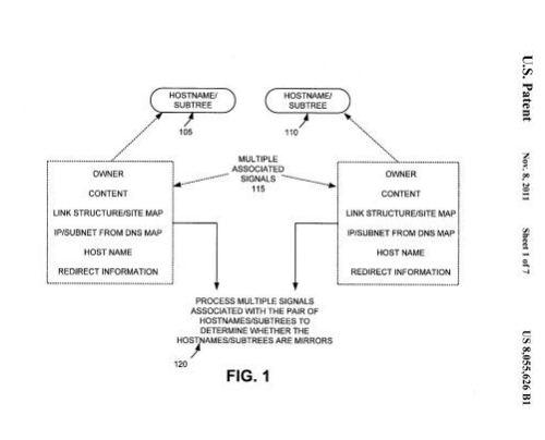 Proprio in questi giorni, Google ha rilasciato un brevetto, ormai vecchio di 7 anni, consultabile a questo indirizzo web: Detecting mirrors on the web (US Patent 8,055,626),
