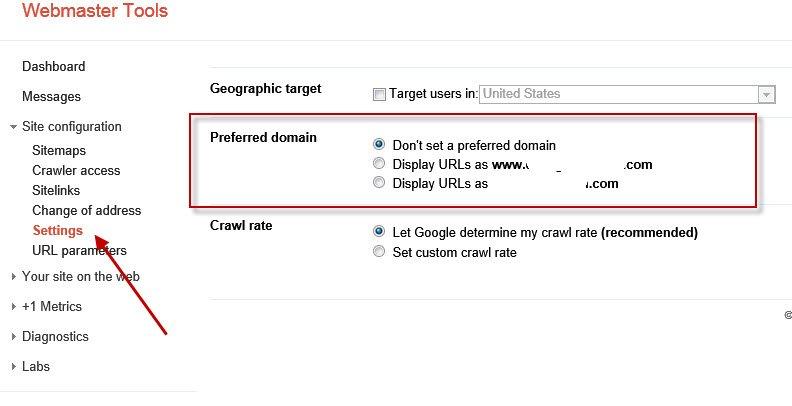 Una volta, configurato il nostro dominio, possiamo “dirlo a Google” direttamente dagli strumenti per webMaster come mostra la seguente immagine: