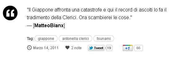 L'11 marzo il terremoto in Giappone. Tanti i messaggi di cordoglio e di solidarietà che vengono espressi, ma anche qualche staffilata al pensiero italiano: