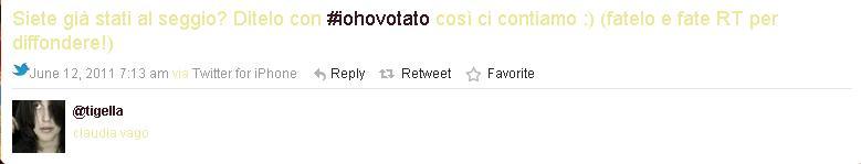 A giugno, manco a dirlo, è la politica a continuare a farla da padrona. In particolare sono i referendum su ritorno al nucleare, acqua pubblica e legittimo impedimento a catalizzare l'attenzione degli italiani. Twitter diventa una cassa di risonanza importante per il movimento del "sì": fra gli hashtag più utilizzati, #iohovotato: