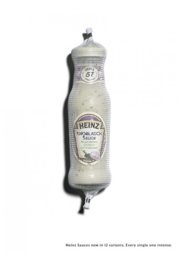 Una delle ultime idee creative circa la salsa all'aglio utilizzate dalla Heinz era stata quella di venderla nei market tedeschi all'interno delle classiche retine che ne fanno da packaging.