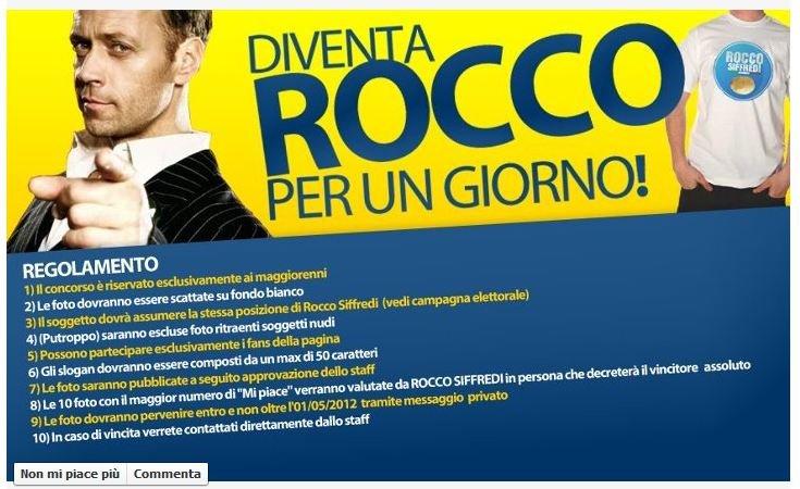 Nello specifico però vogliamo parlarvi del concorso lanciato dallo staff (ancora anonimo) lo scorso venerdi dal titolo "diventa Rocco per un giorno" di cui vi mostriamo la locandina :