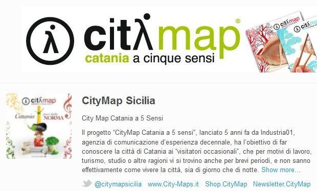 City Map - Catania a 5 sensi è un bel progetto, lanciato nel 2006 da Industria01 nell'obiettivo di far conoscere la città a turisti e visitatori. Visti i risultati e gli apprezzamenti ottenuti, gli orizzonti sono stati allargati a tutta la Sicilia, integrando l'edizione cartacea - apprezzatissima e che conta 3 uscite annuali - con il sito web e alcune interessanti presenze sui principali social network. E i risultati non si sono fatti attendere: vittoria al premio Web Italia 2011 - sezione turismo! Complimenti al team ;-)