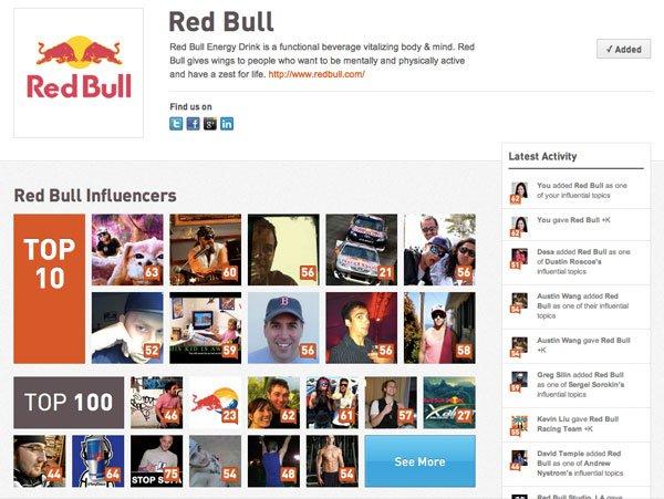 Proprio Klout ci invita poi a dare un’occhiata allo spazio dedicato a Red Bull fornendo i nostri preziosi feedback: cosa gli rispondiamo, ci piace? 😉