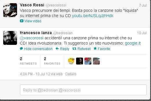 Non ho inventato niente - ci mancherebbe. Ho solo rielaborato quello che succede da quando l'uomo sa ridere: riportare sulla terra chi è su un piedistallo. Succede giornalmente anche su twitter, dove i VIP twittanti ricevono risposte dei tipi più svariati. Solo che l'insulto fine a se stesso, non serve a nulla. Alimenta solo il - finto - vittimismo della persona colpita. Invece la presa in giro che mette a nudo, quella perfetta, quella che fa sbottare il lettore in una risata segue vie diverse.