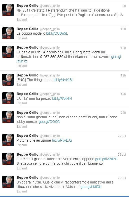 In questo senso, Beppe Grillo può essere annoverato fra le eccezioni? Il suo account è di fatto un megafono del blog.