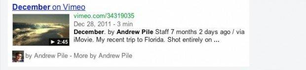 L'ultima news è SEO oriented: per ottimizzare i risultati sui motori di ricerca - specie Google - dei vostri video, ora è possibile attribuire agli stessi video caricati su Vimeo il vostro account Google+. Ecco un esempio, sempre dal blog: