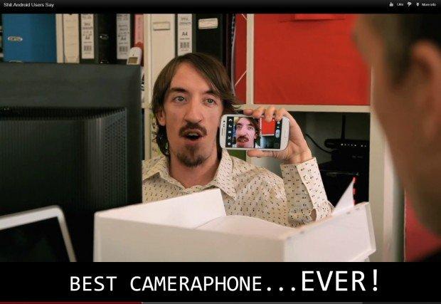 Così come iOS, anche Android ha le sue “victim”. Non più t-shirt blu ed occhiali da intellettuale, ma look trasandato e camicie dalla dubbia fantasia; i modi di fare, però, sono esattamente gli stessi. Il video è in rete dal 22 Ottobre ed ha già collezionato quasi 700.000 views ad oggi: un risultato relativo migliore del video precedente. Non mancano i divertenti clichè; eccone alcuni: