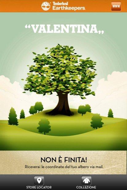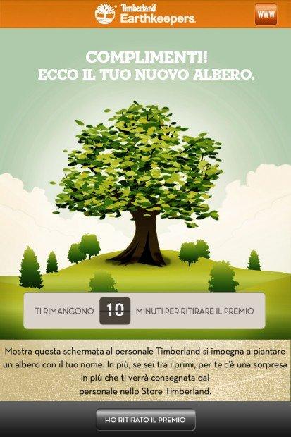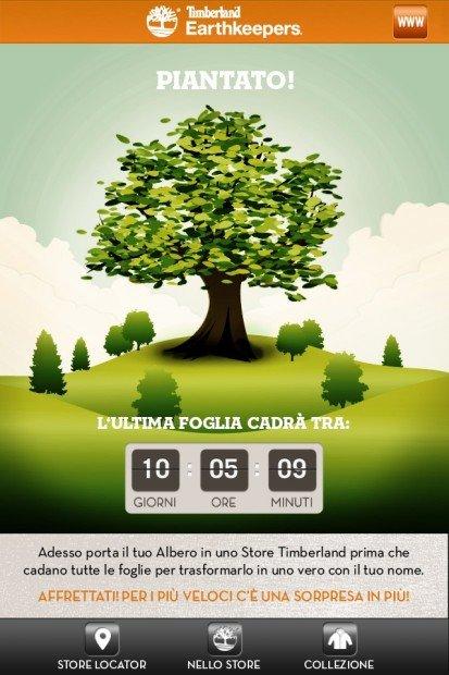Se posso fare un esempio, abbiamo appena rilasciato un’applicazione per Timberland, Mr Tree, che ti permette di piantare un albero nel tuo smartphone. L’albero comincerà a crescere e prima che tutte le foglie cadano dovrai portarlo in un negozio Timberland. Nel negozio un QR code trasformerà l’albero virtuale in uno reale che verrà piantato con il tuo nome ed inserito in uno dei tanti progetti di riforestazione di Timberland in giro per il mondo. Riceverai anche una mappa geolocalizzata che ti indicherà dove è stato piantato il tuo albero.