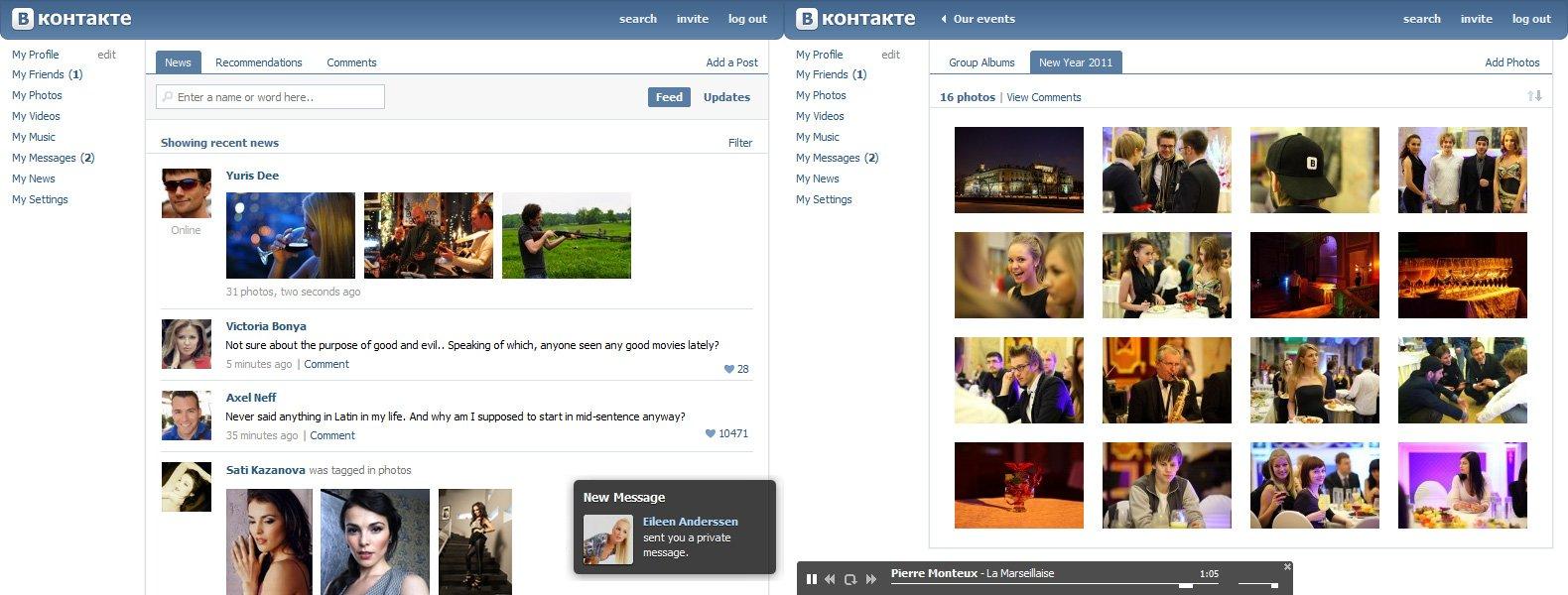 Vkontakte approfitta del momento e riesce continuamente ad adattarsi ad ogni nuova feature che viene lanciata da Zuckerberg rendendola appetibile per il mercato locale e mantenendo in questo modo costante l'impegno con gli utenti. Facebook, però, si rimette in pari rapidamente con la sua versione in lingua russa.