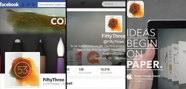Fiftythree, produttore dell’app Paper, utilizza sempre il proprio logo come immagine del profilo e alcune parti della grafica dell’applicazione per conferire linearità ai propri profili