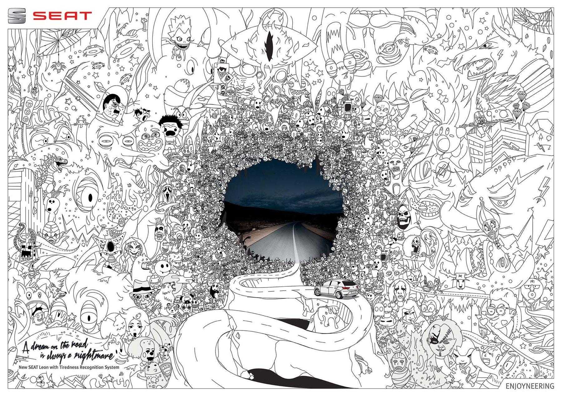 Saranno contenti gli amanti dei fumetti! Per promuovere la nuova Seat Leon è stato scelto un accattivante annuncio stampa. Il payoff recita: “Un sogno sulla strada è sempre un incubo. Ma con una macchina come questa è possibile uscire fuori dal pericolo". Infatti, è stata dotata di un dispositivo intelligente che monitora la segnaletica orizzontale. Qualora si rilevi che l’auto sta per attraversare involontariamente la carreggiata perché il guidatore ha avuto un colpo di sonno ne corregge immediatamente la direzione. Sarà il veicolo a segnalarvi la necessità di fermarvi per una sosta rigenerante.