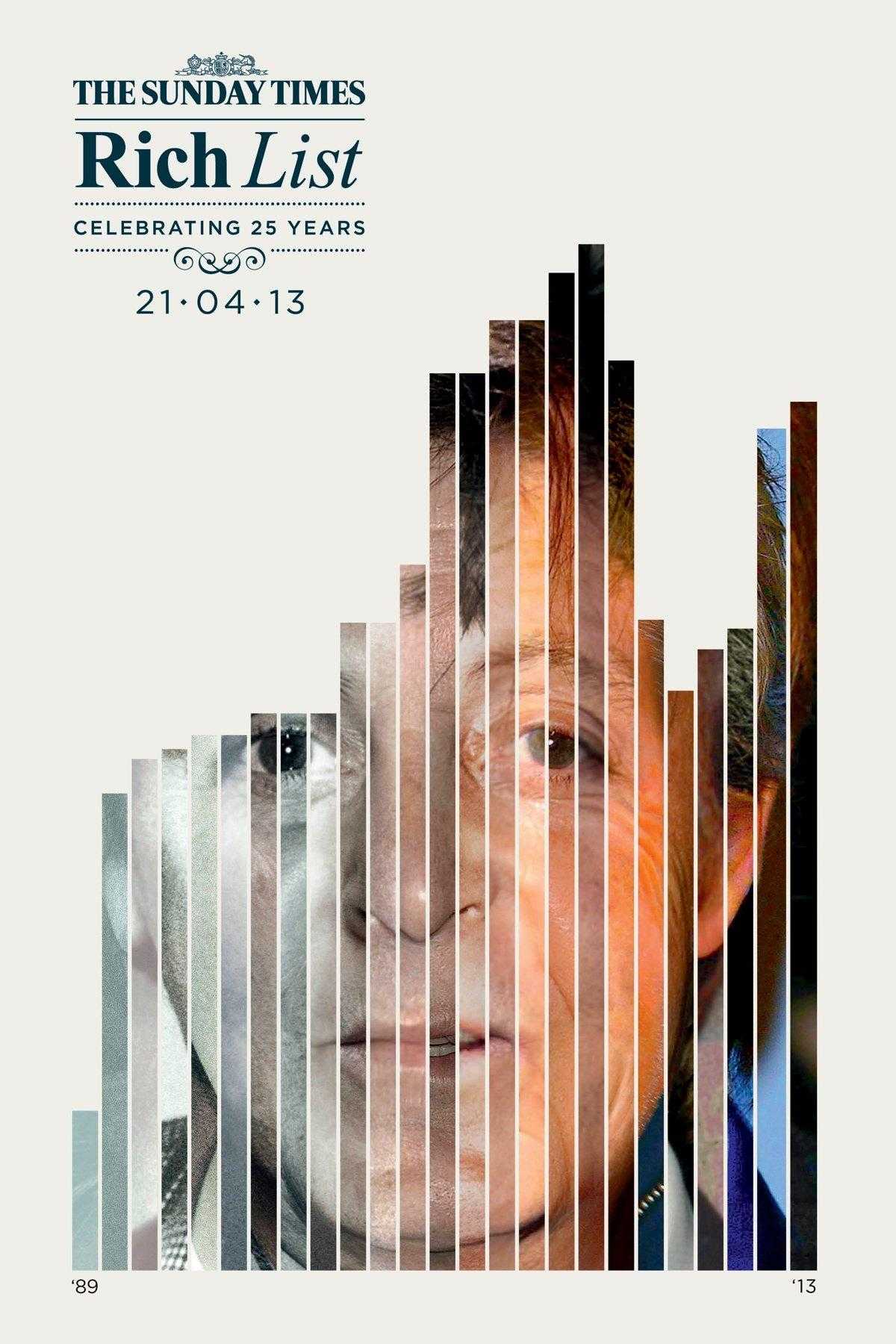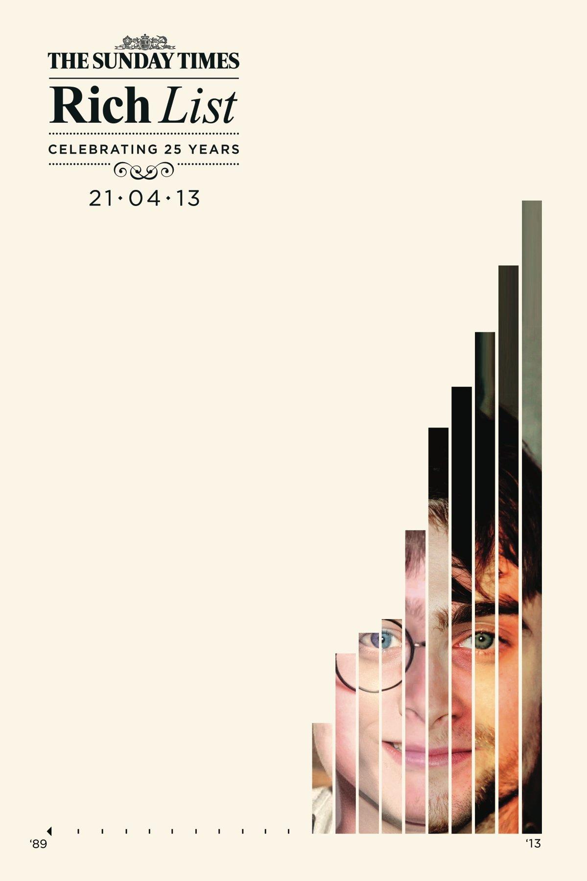 Altro annuncio stampa vincente dell’agenzia Grey di Londra. In occasione della pubblicazione della Rich List 2013, giunta alla sua venticinquesima pubblicazione, il Sunday Times ha pubblicato una serie di annunci che ritraggono gli uomini più ricchi della Gran Bretagna e dell’Irlanda.