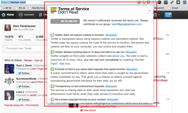 Ecco perché questa estensione vi dà maggiori informazioni. Sappiamo che nessuno, ma davvero nessuno, legge le condizioni di servizio e questa estensione può colmare questa lacuna.