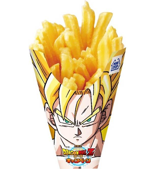 Per l’uscita in Giappone del nuovo film di Dragon Ball Battle of Gods, la catena di mini market Lawson ha messo a disposizione dei propri clienti prodotti dal packaging veramente innovativo. Nei negozi sono state vendute patatine fritte che richiamano i capelli del Super Saiyan, sfere del drago al gusto pizza, l’insalata verde di Vegeta e tanto altro.
