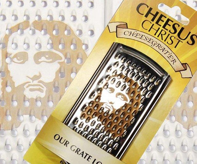 Una grattugia con un nome piuttosto insolito: Cheesus Christ. In acciaio inossidabile, con un manico nero ergonomico e con un’immagine del Signore in primo piano. Non è una bufala. È possibile acquistarla online su questo sito.