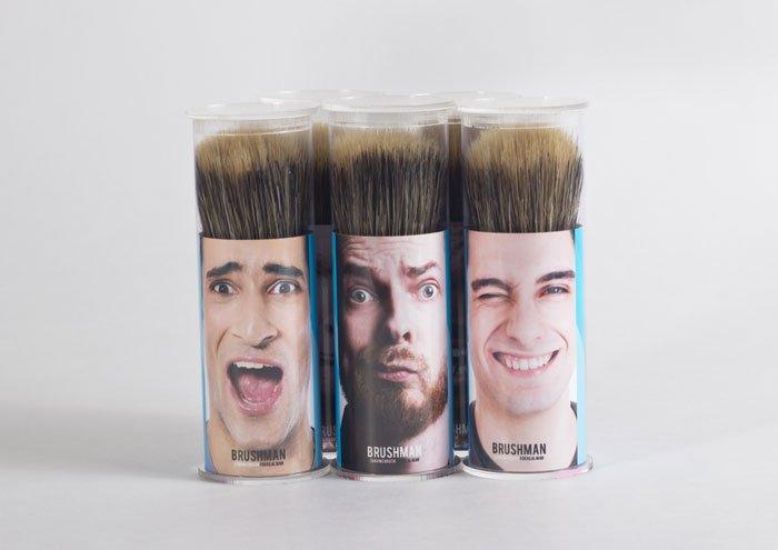 La soluzione di design di Brushman renderà la vostra rasatura quotidiana molto più particolare. In base ai gusti e alla personalità del consumatore si potrà scegliere tra diversi packaging personalizzati. Scegliete il pennello che più si avvicina a voi. Le facce buffe dei personaggi ritratti sono certamente molto simpatiche.