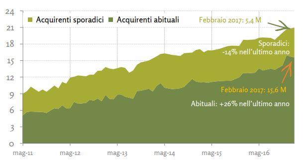 Nel 2013 lo shopping online in Italia è cresciuto del 25% in un anno. Sempre in Italia i fashion e-shopper sono saliti a oltre 9 milioni, un incremento rispetto all'anno precedente del 14%. Il 18% di loro compra attraverso smartphone e tablet.