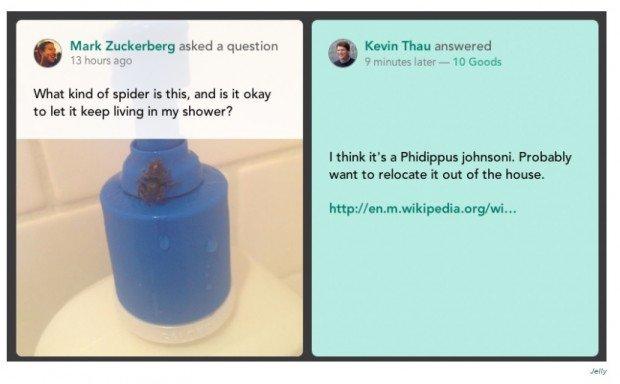 La Jelly-mania ha iniziato a contaminare in molti, non risparmiando neanche Mark Zuckerberg che qualche giorno fa, dal bagno di casa sua ha fotografato un ragno nella sua doccia chiedendo ai suoi “amici’ di che tipo di ragno si trattasse e se fosse giusto lasciarlo vivere nella sua doccia.