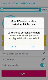 CheckBonus.it è l’app per smartphone che simula il funzionamento di una carta fedeltà. Puoi accumulare punti, sbloccare promozioni e richiedere i premi del catalogo premi direttamente con il tuo smartphone. Attualmente disponibile per iOS, lo sarà a breve anche per le altre piattaforme.