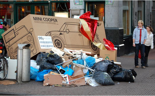 Siamo ad Amsterdam, Babbo Natale è già un nostalgico ricordo. Tra le vie della città, passanti increduli e curiosi non riescono a credere ai loro occhi: fra scarti, spazzatura ecco spuntare, si fa per dire, uno scatolone davvero insolito: un gigantesco involucro di cartone della Mini Cooper. L'idea è quella di far credere che qualche bambino molto fortunato abbia ricevuto in regalo una "macchinina" un po' diversa dalle altre.