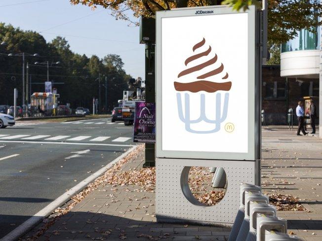 TBWA, nota agenzia pubblicitaria, ha deciso di sostituirli puntando sui prodotti più che su messaggio o slogan. Già l'anno scorso a Parigi si era tentato di "smarchiare" il colosso del fast-food valorizzando i prodotti classici con foto che li ritraevano in primo piano, succulenti e appetitosi, portando a giudizi positivi non ostacolati dall'invadenza del logo.