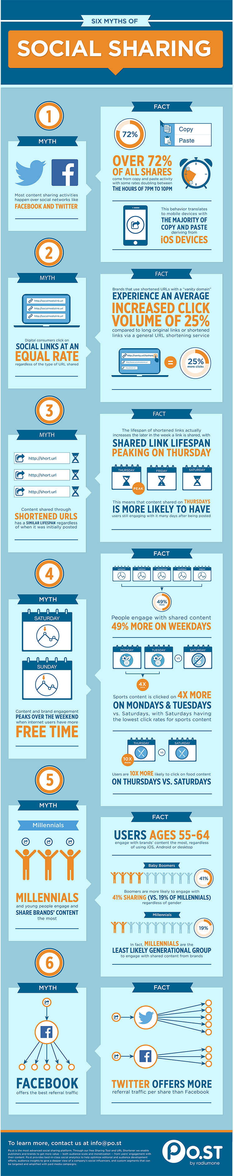 In realtà: il 72% di ciò che viene condiviso dagli utenti è frutto di un'intensa attività di copia e incolla. E, indovinate... sapete quando si raggiunge il picco delle condivisioni? Tra le 19.00 le 22.00!