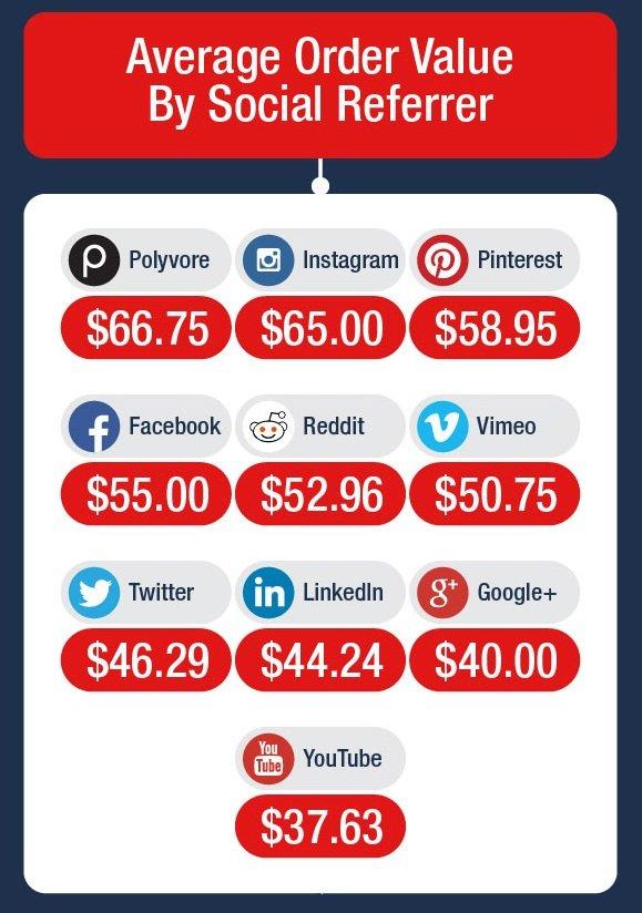 Si è abituati a pensare che i canali sui cui investire siano Facebook e Twitter, ma anche altri siti stanno avendo risultati significativi, soprattutto per quanto riguarda metriche specifiche, come il valore medio d'acquisto (o per gli addetti ai lavori AOV: Average Order Value).