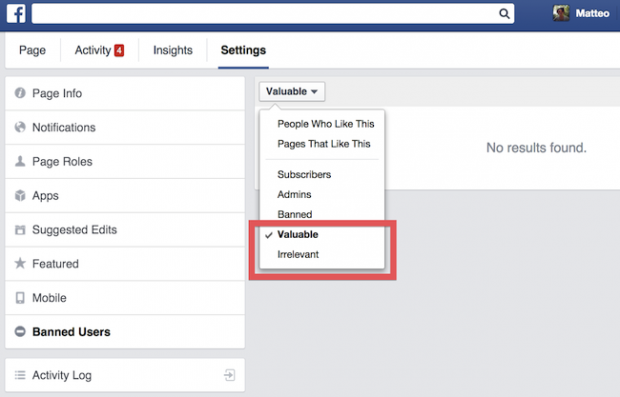 L’utente ha fatto la scoperta nella sezione degli utenti bannati, tra impostazioni della sua pagina. La tendina conteneva due nuovi tasti che permettevano di visualizzare solo gli utenti preziosi o quelli irrilevanti.