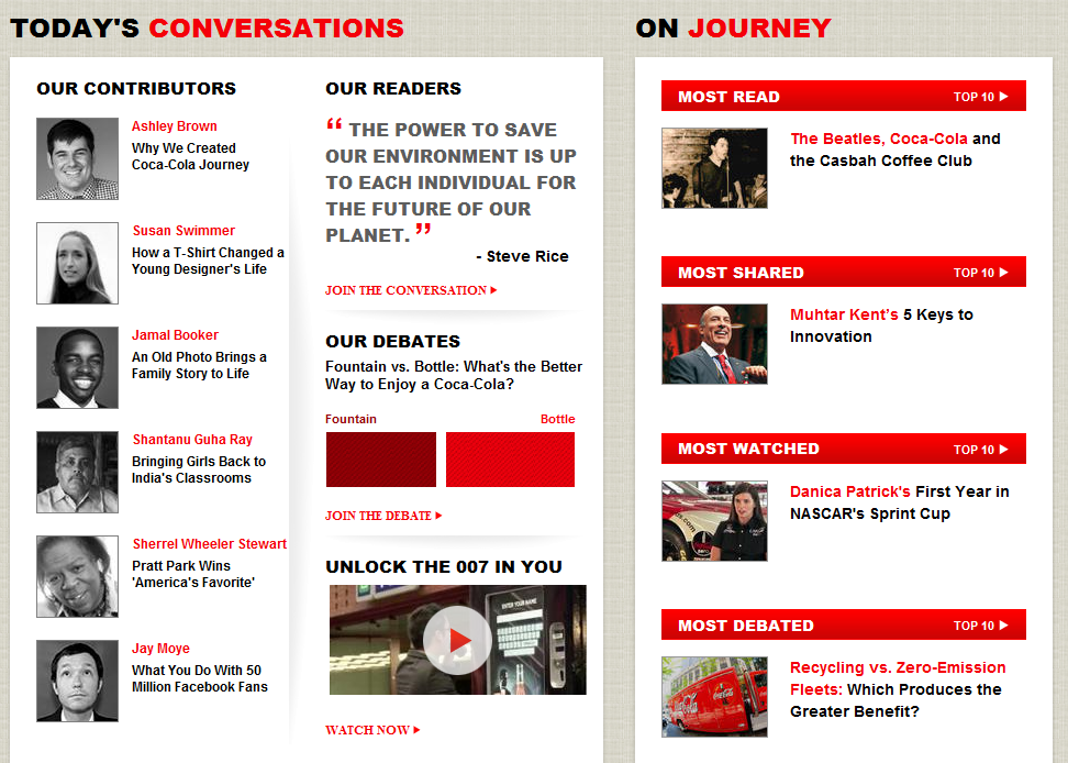 Comprendendo a pieno il potere della comunicazione attraverso la possibilità di raccontare storie, l’azienda ha dato una nuova veste al proprio website, che ora presenta un nome diverso e non solo. Coca-Cola Journey si presenta come una rivista digitale interattiva, ricca di contenuti che toccano “a rotazione” temi come: cultura popolare, social media, brand identity, marketing strategy, ricette e consigli per la carriera professionale.