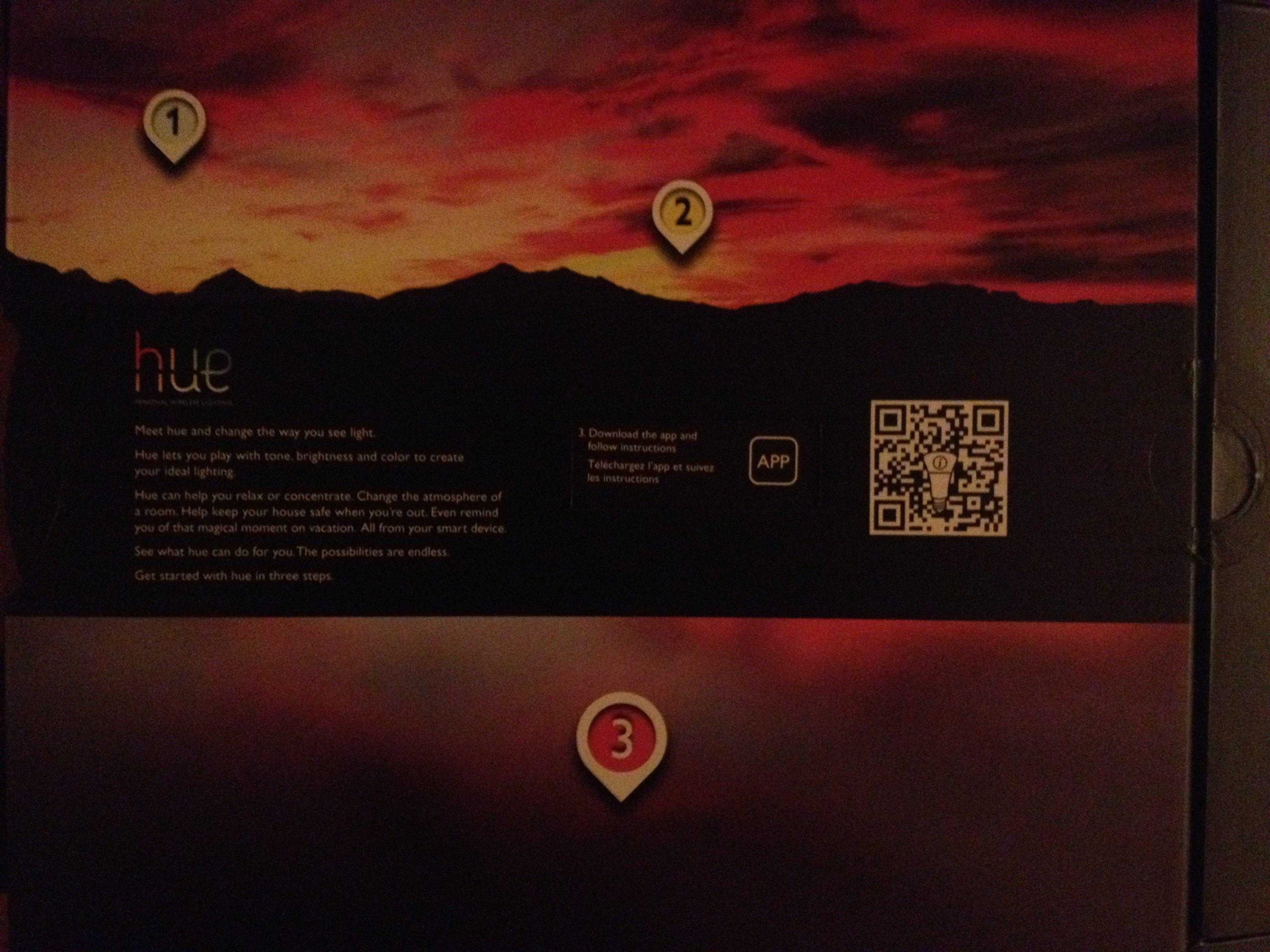 Il Philips Hue - Starter Kit è composto da 3 lampadine, un "bridge" e i relativi cavi per connetterlo al modem. Quando lo apro, provo subito a cercare le istruzioni per capire come funziona (essendo poco avvezzo, come detto prima, a tutto ciò che è domotica).