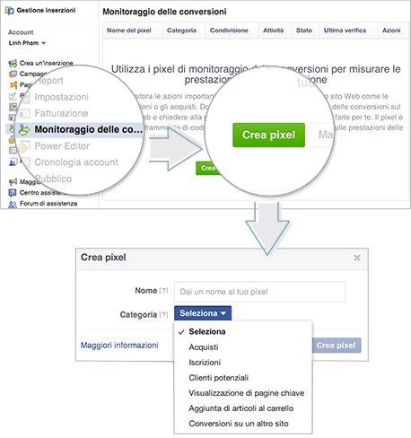 Creare il pixel di monitoraggio delle conversioni è molto semplice, e si può fare accedendo a Gestione inserzioni, allo strumento per la creazione di inserzioni o a Power Editor.