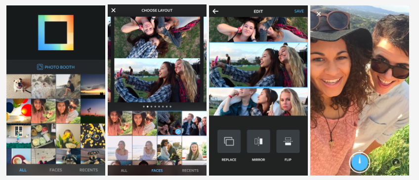 L'app nasce proprio dalla constatazione per gli sviluppatori di Instagram che uno su cinque dei suoi utenti mensili attivi condivide composizioni e collage di immagini create con app di terze parti. Questo vuol dire che oltre 60 milioni di utenti Instagram utilizza queste applicazioni per realizzare modifiche e collage.