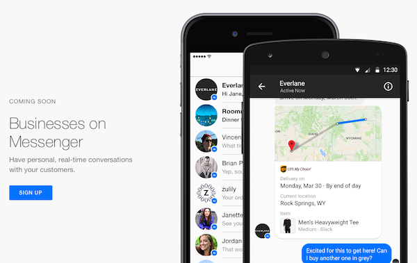Il nuovo servizio è parte della nuova piattaforma di Messenger di Facebook, che si apre gli sviluppatori di terze parti e si lancia con diversi partner, come Zendesk, Everlane e Zulily.