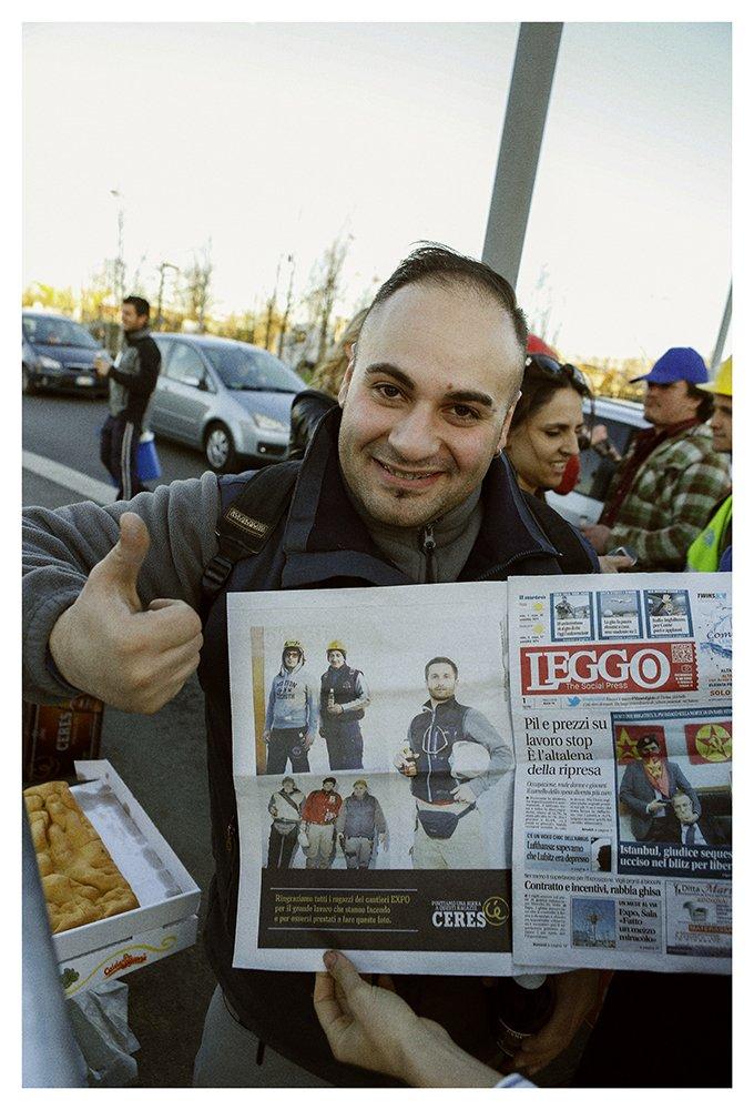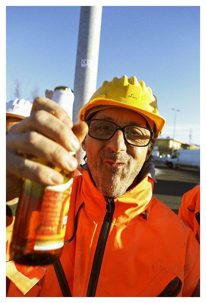 Portiamo una birra a questi ragazzi. Oggi pomeriggio alle cinque, alla fine del turno, offriremo birra fresca e focaccia ai lavoratori del cantiere EXPO.