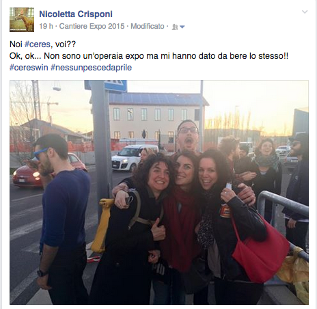 Ceres punta sulla tensione psico-sociale di Expo e decide di dedicare proprio a loro, probabilmente le vittime migliori per un “pesce d’aprile” quest’anno, questa giornata, offrendo birra e focacce. Tutti hanno riso, magari anche condiviso il post, in molti si sono meravigliati nel trovare il loro messaggio su Leggo e Metro, in migliaia si sono iscritti nel giro di poche ore all’evento creato su Facebook, ma in pochi hanno creduto che fosse tutto vero.